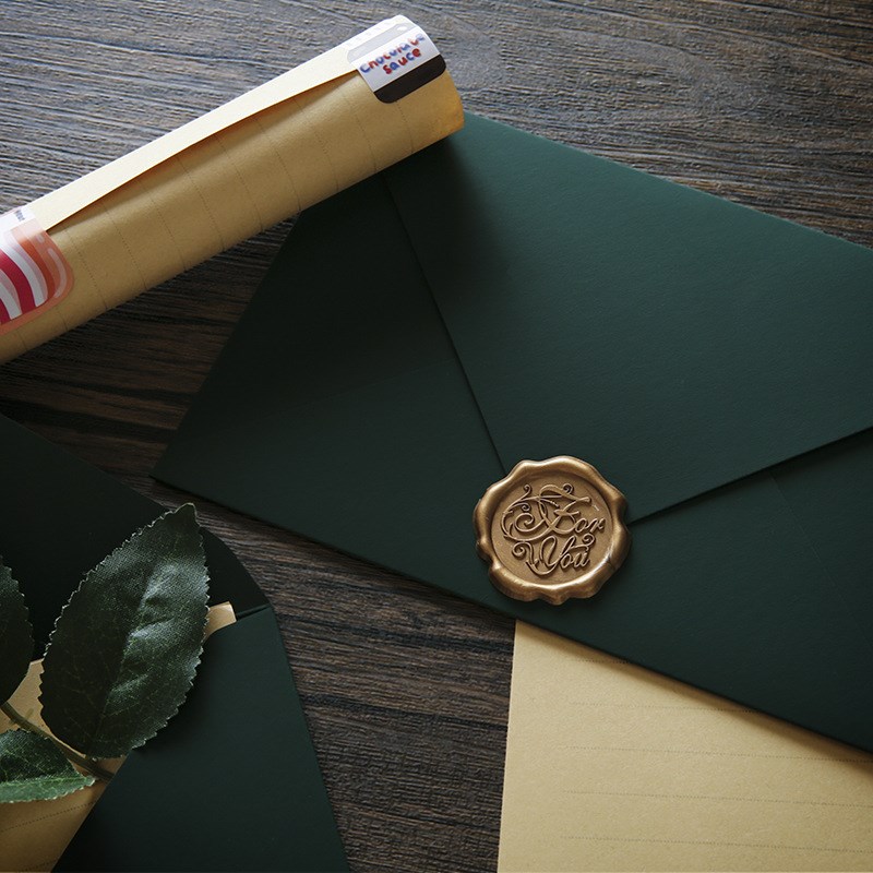 墨绿信封信纸套装复古风情书中国C风牛皮纸特种纸请柬火漆触感信