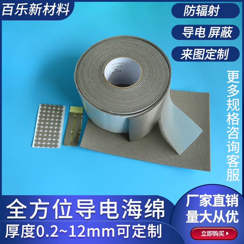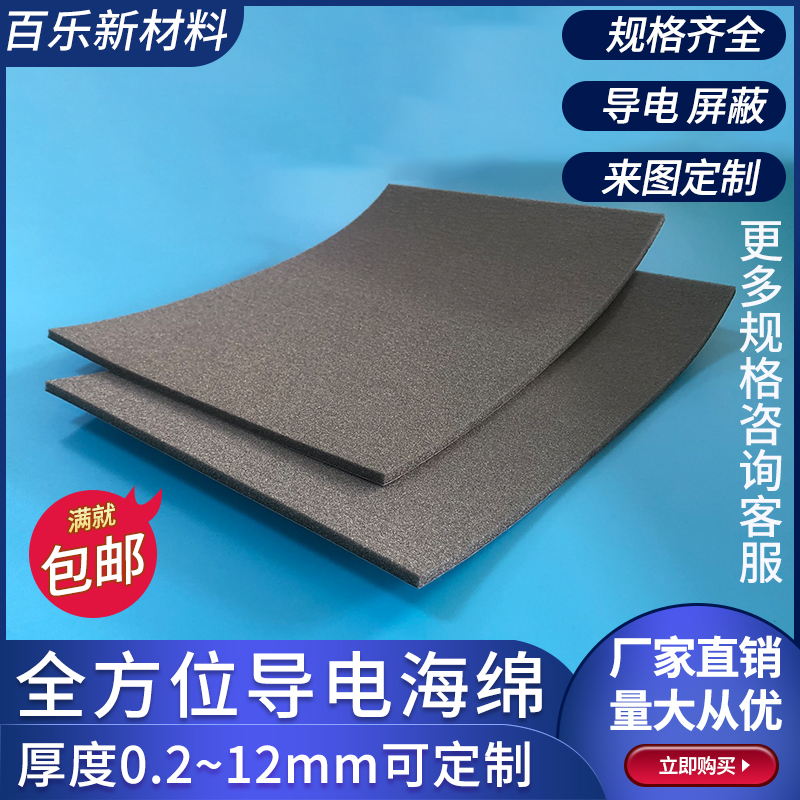 全方面导电海绵0.2~1s2mm泡棉一平方导电布屏蔽海绵厚度尺寸定制