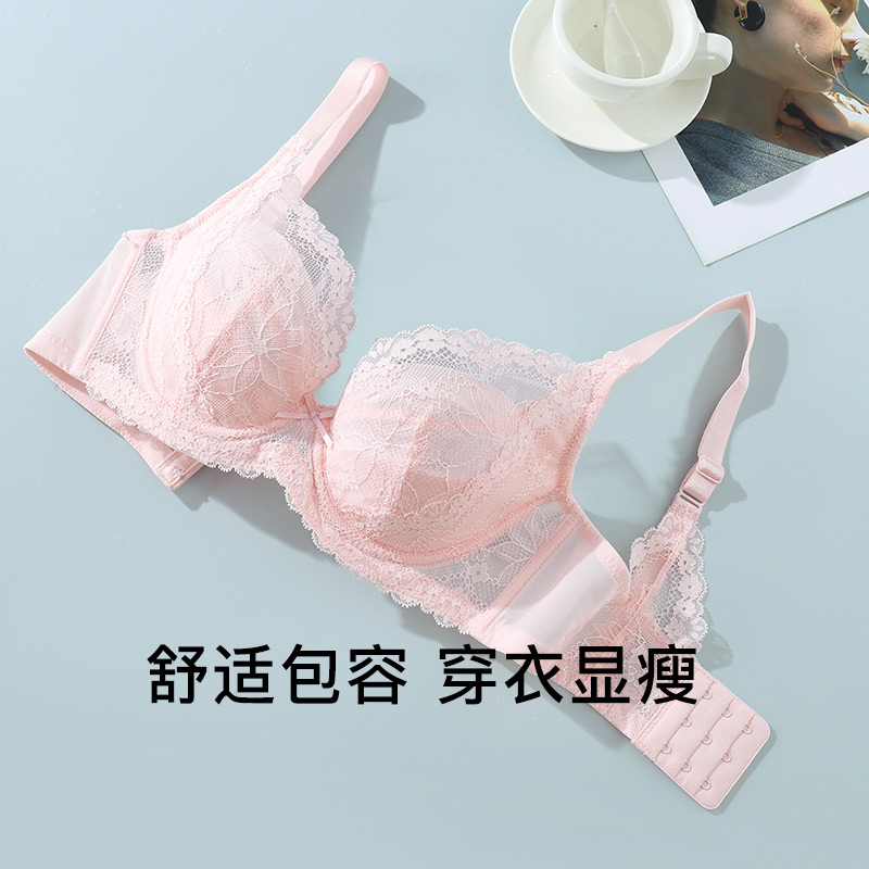 茜施尔大胸显小胸内衣全罩杯薄款蕾丝美背大码调整防下垂文胸