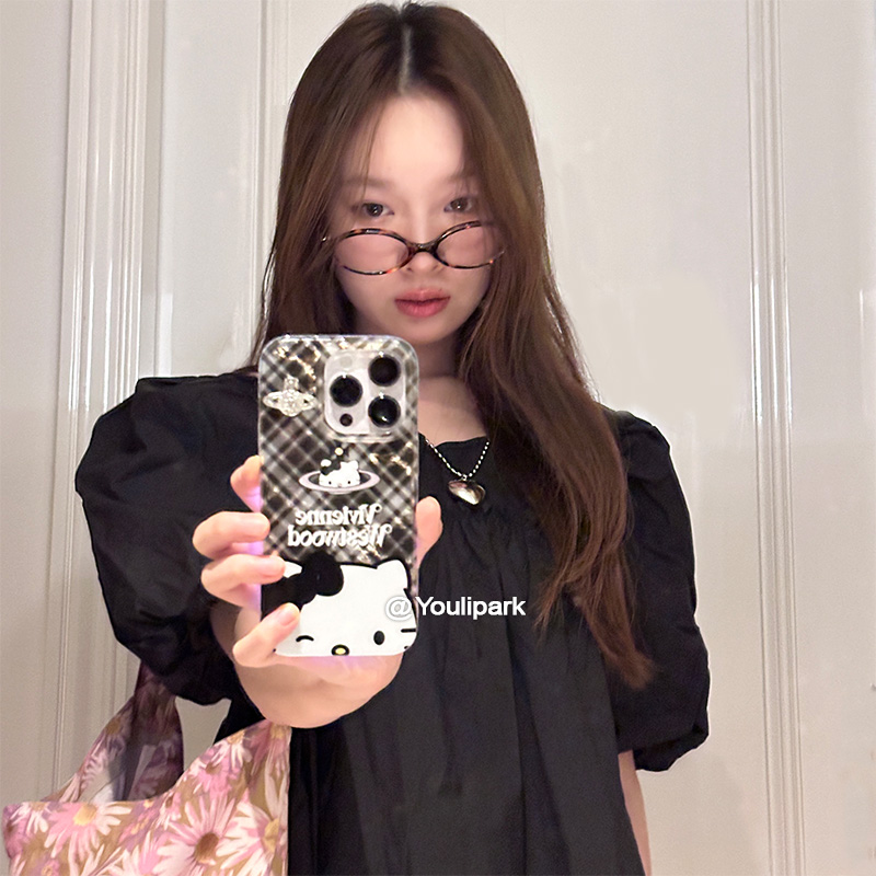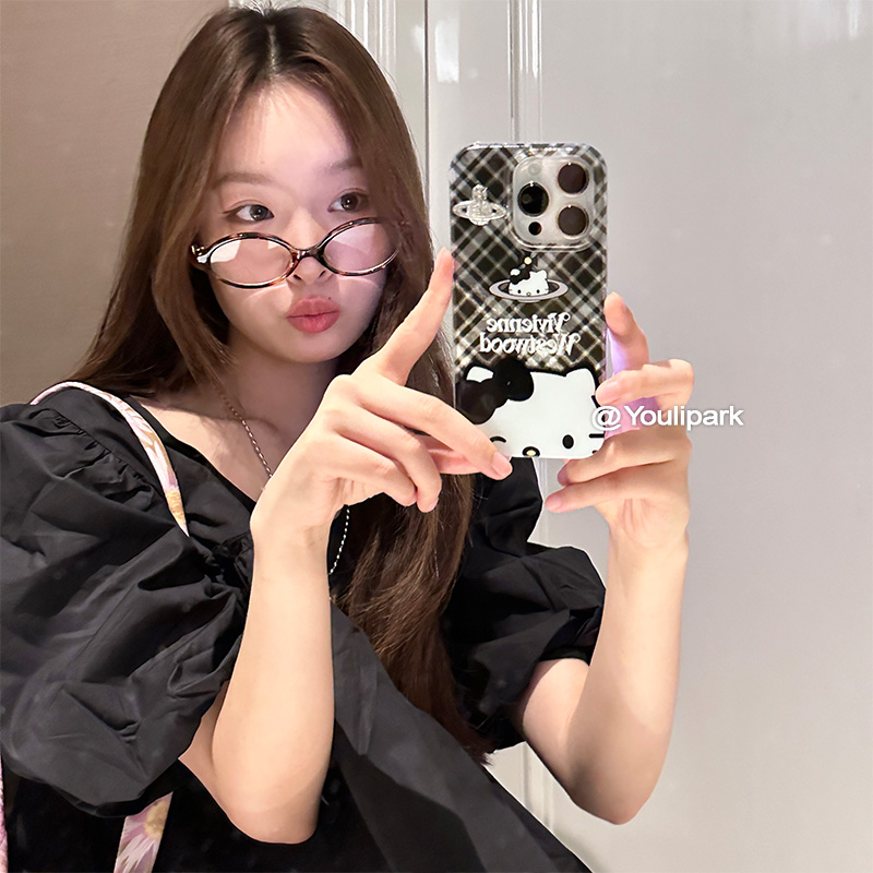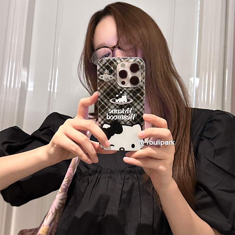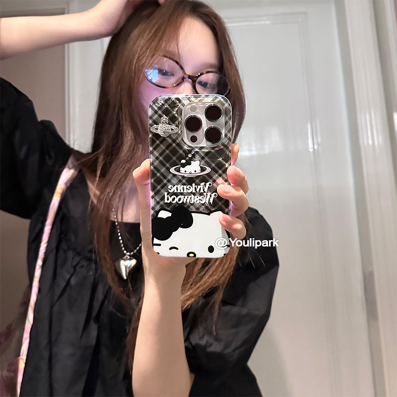 由里公园ins小众简约黑白菱格星球猫咪15适用17pro苹果17ProMax手机壳iPhone16全包17软14Promax防摔保护套13