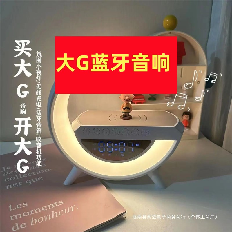 蓝牙音箱无线充电多功能氛围小A夜灯F闹钟生日礼物手机台灯音响揽