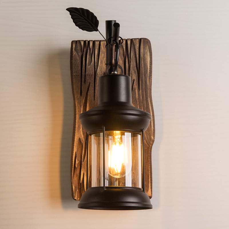 创意树叶实木做旧工业风铁艺室内家居客厅厨房复古个性艺术壁灯