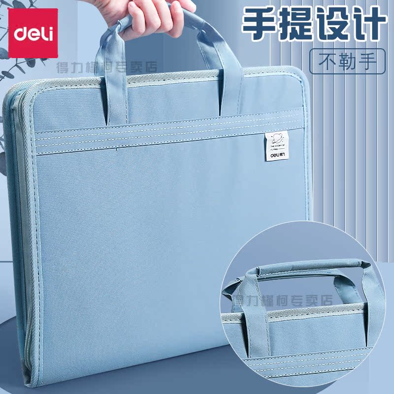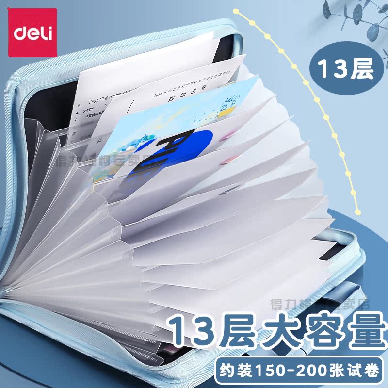 得力a4多层文件袋风琴文件夹大容量帆布试卷袋办公用品资料袋报告档案夹手提风琴包中学生卷子分类神器整理夹