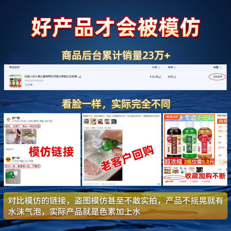 钓鱼小药大麦红薯膏果酸红虫液麝香酒野钓鲫鱼鲤鱼开口诱鱼添加剂