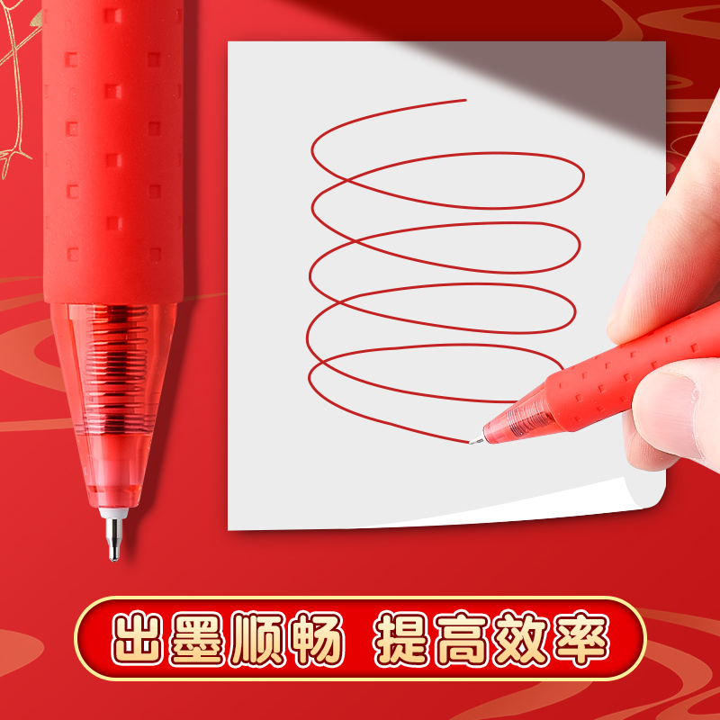 三年二班×点石红笔速干学生用红色中性笔老师专用粗头批改作业高颜值柔绘笔直液式刷题笔圆珠笔勃艮第红水笔