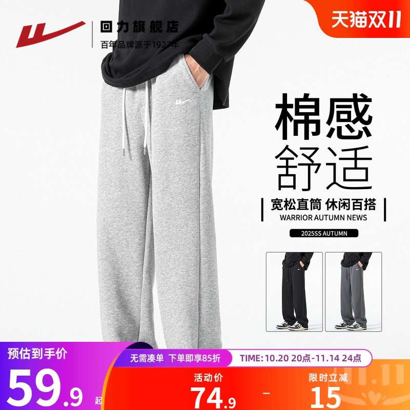 回力裤子男款秋季2025新款直筒垂感宽松运动裤纯棉长裤男士休闲裤