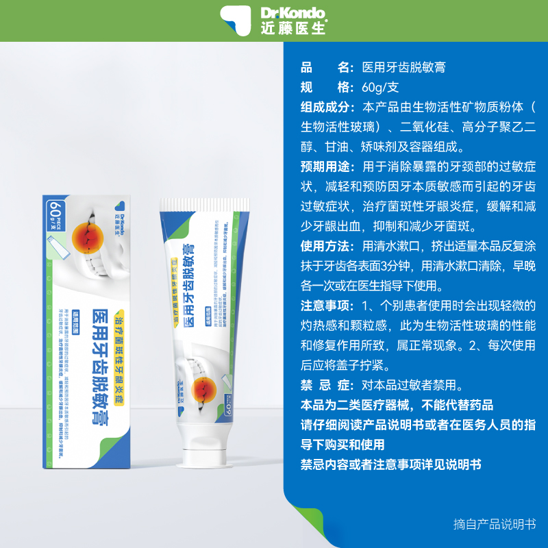近藤医生牙齿脱敏膏牙齿松动牙龈萎缩出血敏感专用修复活性玻璃