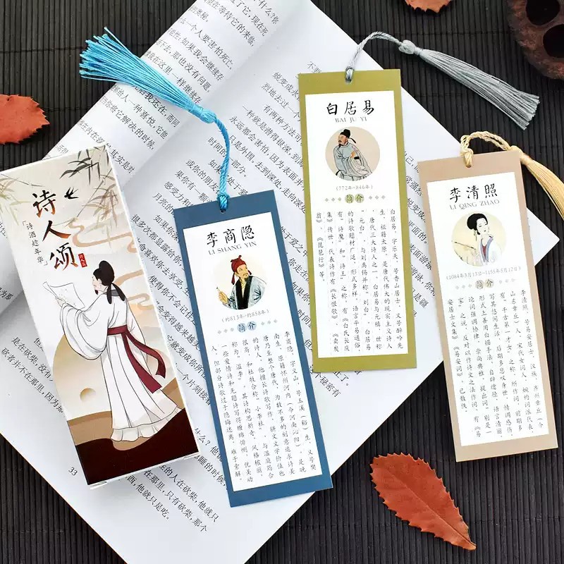 诗人颂书签古代李白高适杜甫王维主要成就代表作必背知识点卡片中国风古诗词创意古典小学生奖品纸质古风礼物