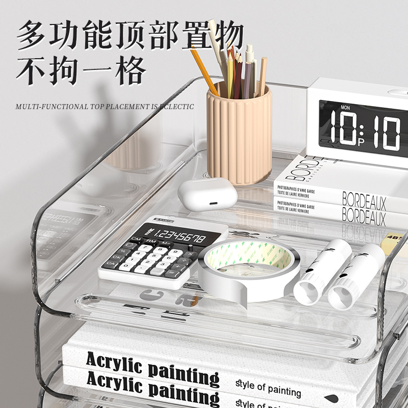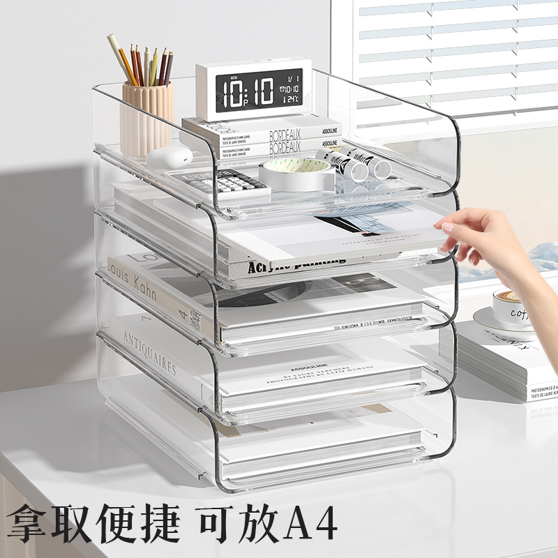 透明桌面文件架a4纸收纳架书本桌面置物架办公室工位分层文件架办公桌置物架收纳多功能资料整理书架架子抽屉