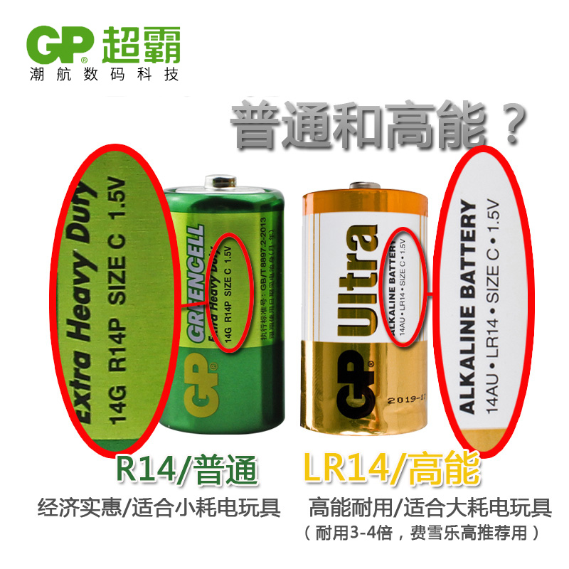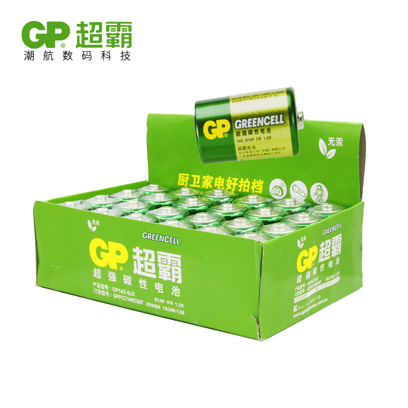 GP超霸2号电池二号碳性电池不可充电池2号宝宝玩具c号电池1.5v玩具面包超人洗澡花洒2号碱性万用表电池12粒