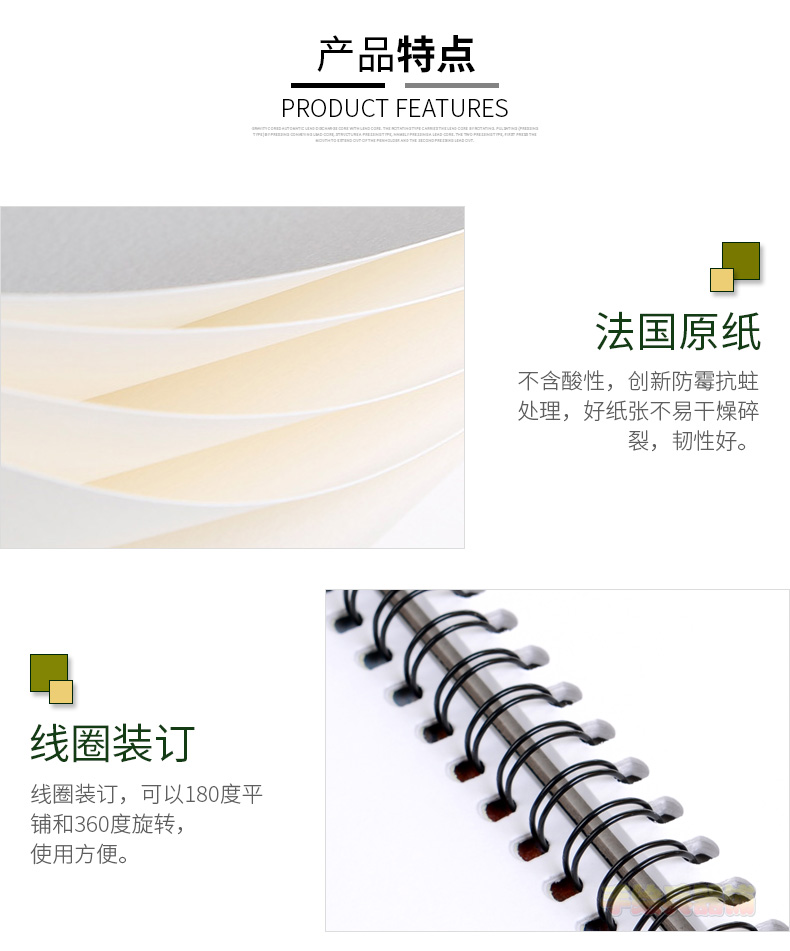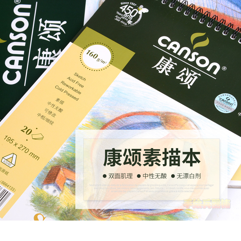 CANSON康颂素描本 160g 20页线圈 中粗偏细纹 8K 16K 无酸 绘画薄 考试练习用 素描 速写 彩铅 炭笔 设计绘图