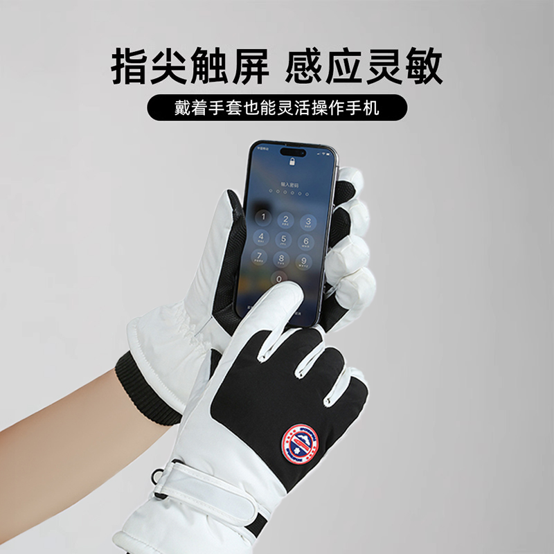 滑雪手套男女可触屏五指防水分指耐磨单双板保暖加绒防滑户外骑行