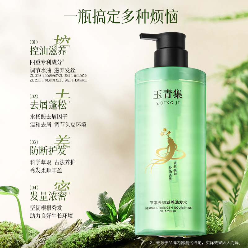 玉青集洗发水草本人参滋养控油韧发防断正品蓬松柔顺丰盈生姜植物