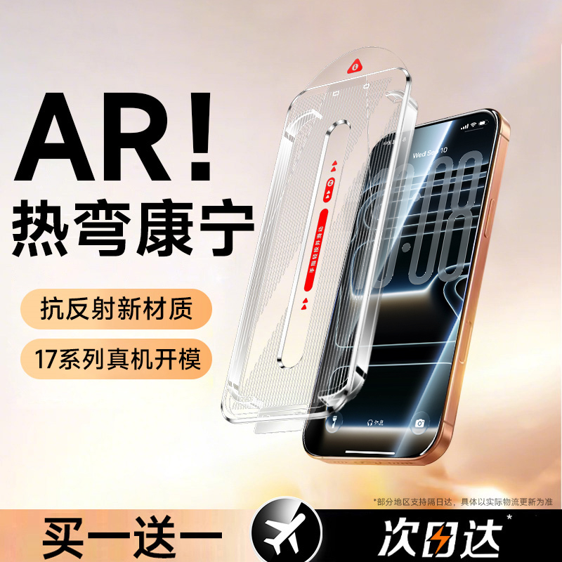 铂信康宁AR抗反射适用苹果17ProMax钢化膜iPhone17/16pro手机膜Air3D热弯屏幕15覆盖保护13保护14贴膜12防窥