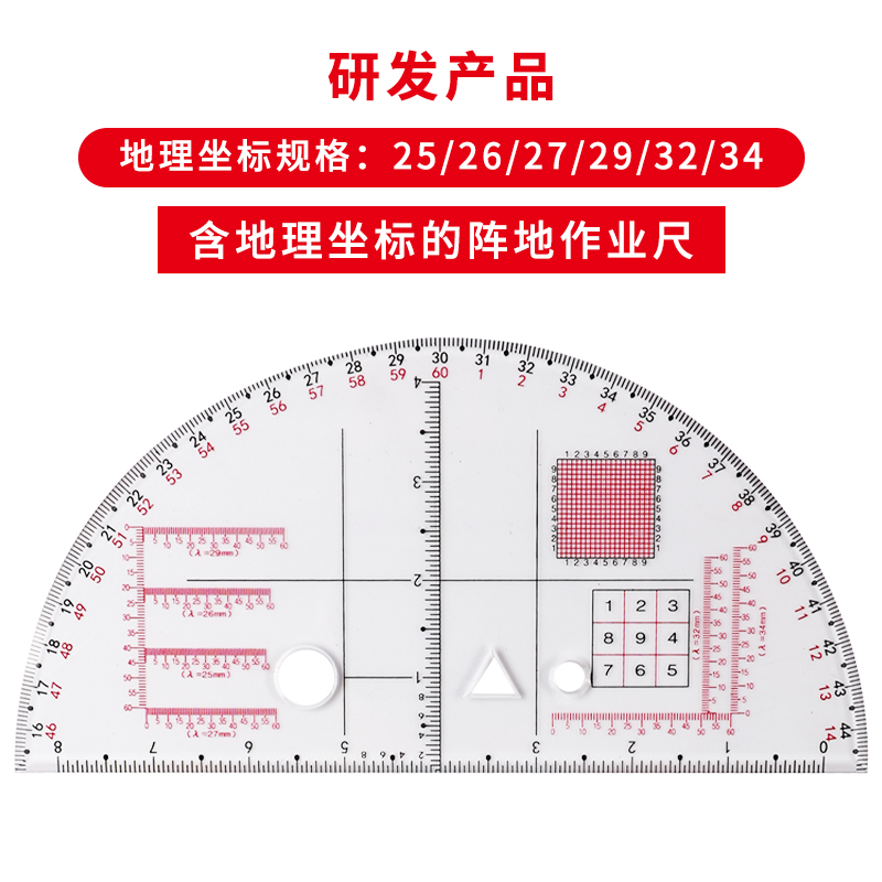 2020型含地理坐标半圆尺阵地作业尺指挥尺带经纬度的半圆尺三件套小尺