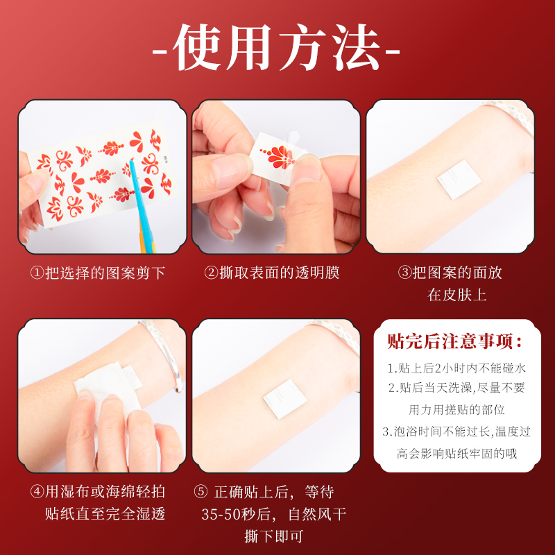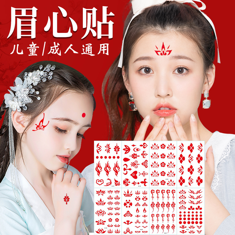 儿童额头眉心贴国庆中秋表演活动节目脸部贴画古风汉服花钿额贴女童古装额头印花纹身贴持久宝宝转印贴纸防水