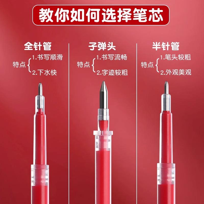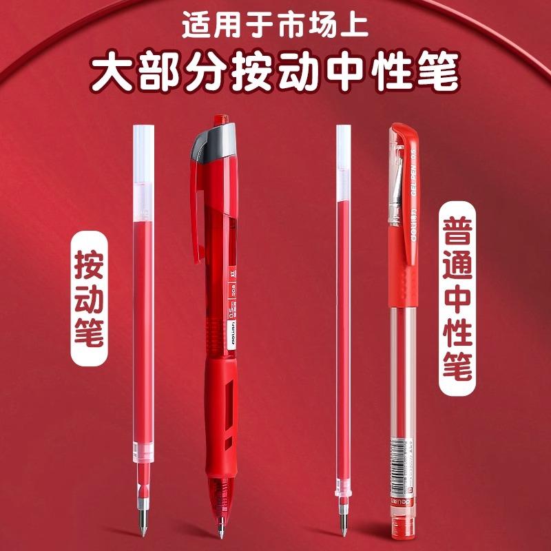 得力红色笔芯按动式0.5mm中性笔替换芯速干红笔芯学生老师批改用