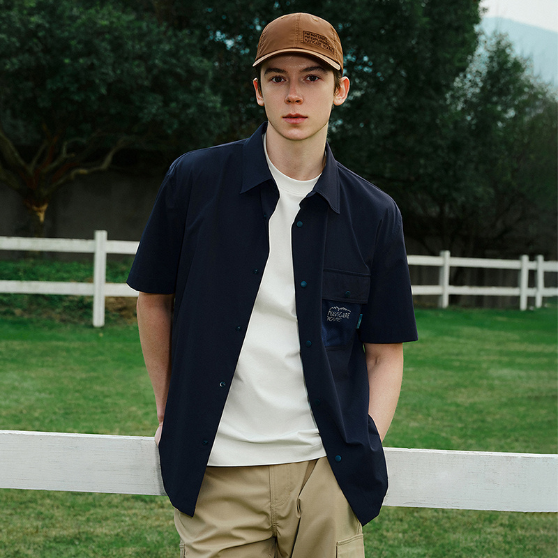 NAVIGARE意大利小帆船蓝色短袖工装衬衫男士新款休闲百搭衬衣外套