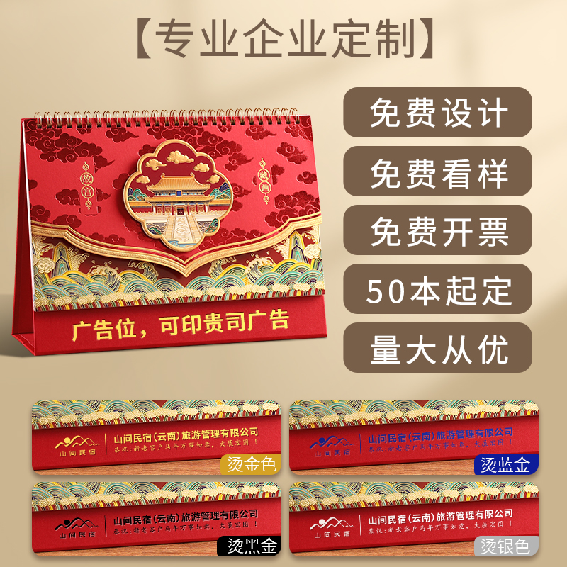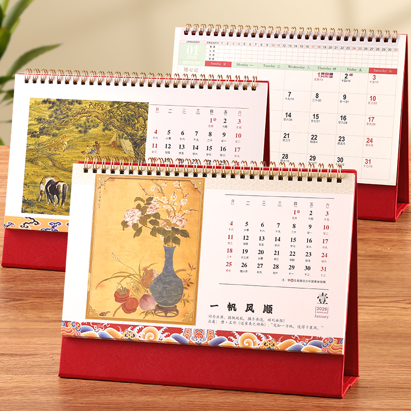 台历2026年新款日历定制logo创意简约小清新韩式办公年历个性中国风桌面摆件商务工作记事计划本订制广告月历