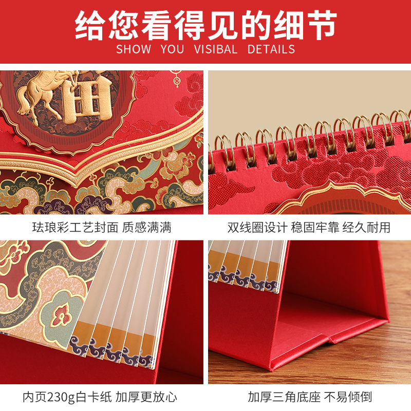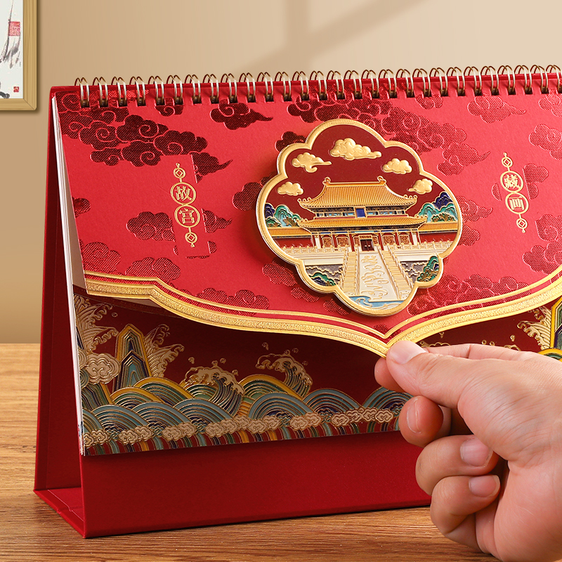 2026年新款浮雕珐琅彩工艺台历精致美观双色镭射浮雕日历桌面好物摆件加厚底座耐用质感满满月历定制企业logo