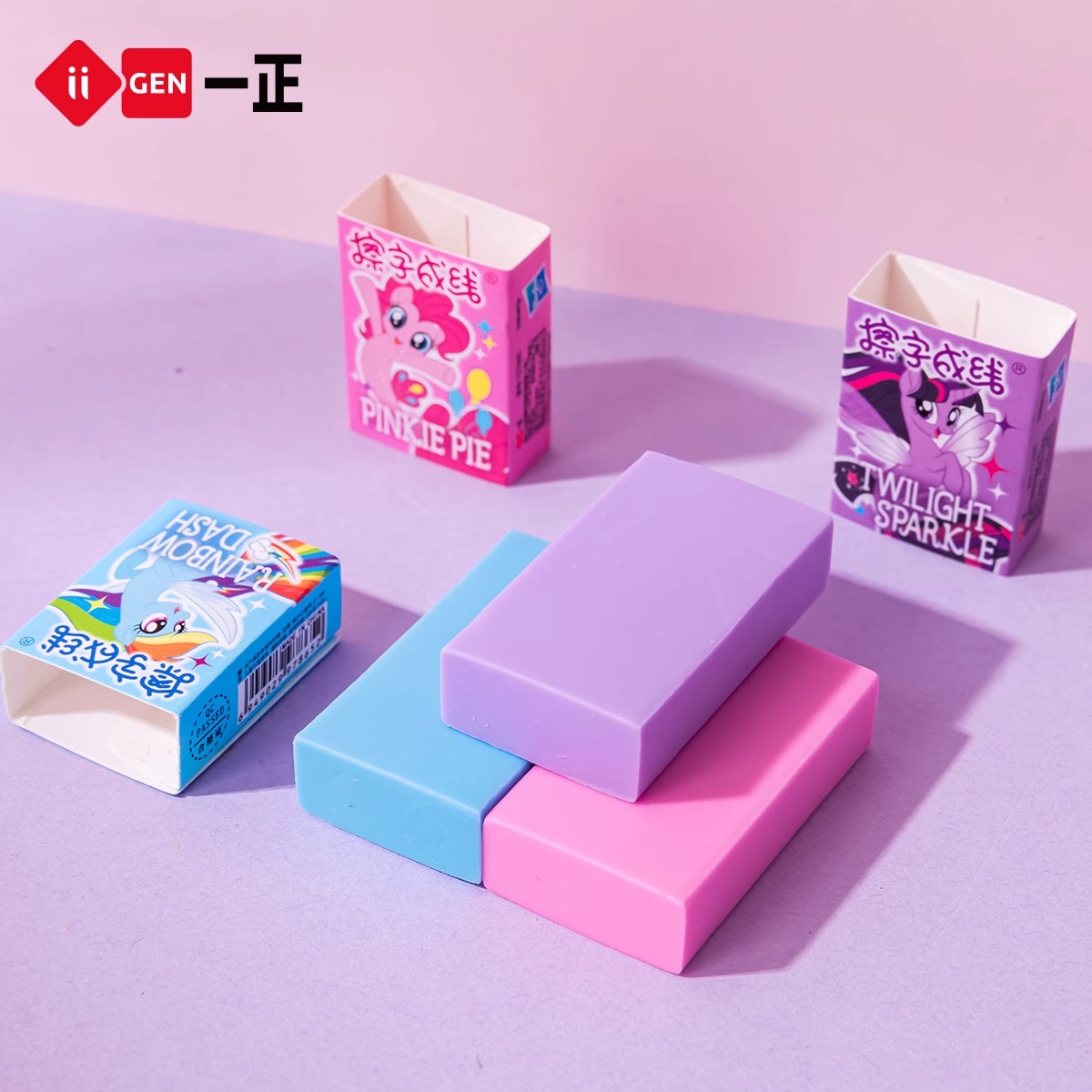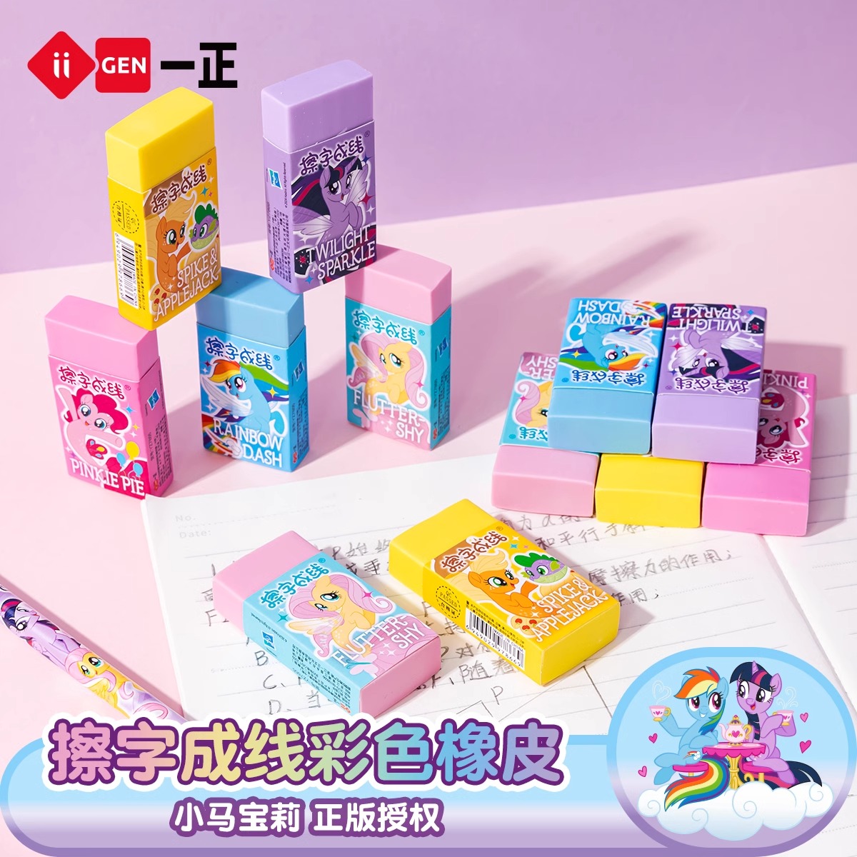 小马宝莉橡皮擦儿童无屑卡通可爱橡皮擦透明擦字成线象皮无碎屑擦的干净幼儿园礼物高颜值文具学习用品一整盒
