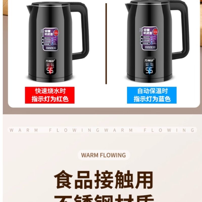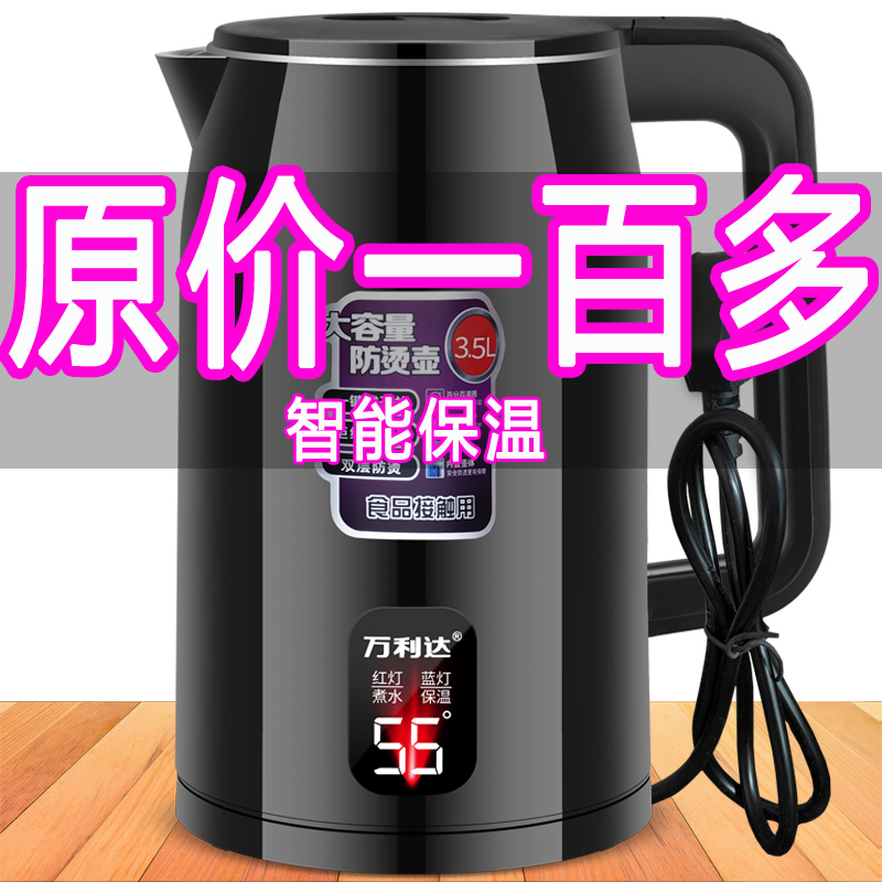 万利达保温电热水壶烧水壶家用自动断电开水壶恒温快煮不锈钢温控