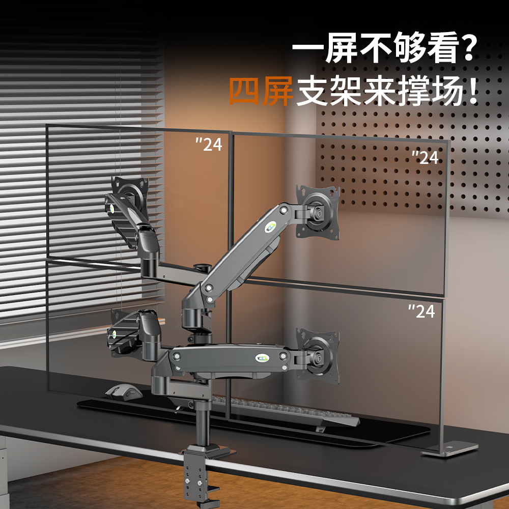娱旭显示器支架双屏三屏四屏电脑显示屏幕机械臂一拖二合一可升降