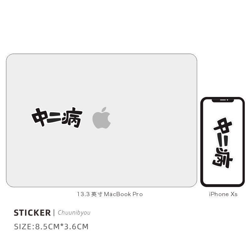 艺贴 中二病拉杆箱登机箱笔记本mac电脑平板手机贴纸灰胶不留胶