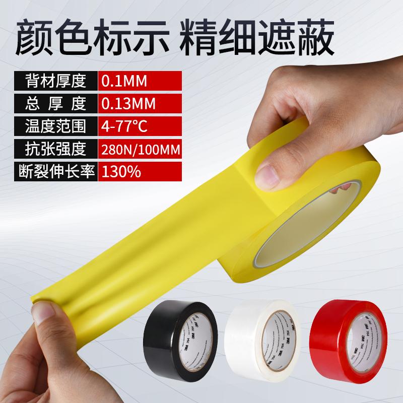 3M471警示胶带黄黑双面斑马线黑黄白彩色彩色警戒地板标识区域划分PVC5S定位专用胶带车间地板划线标识胶带