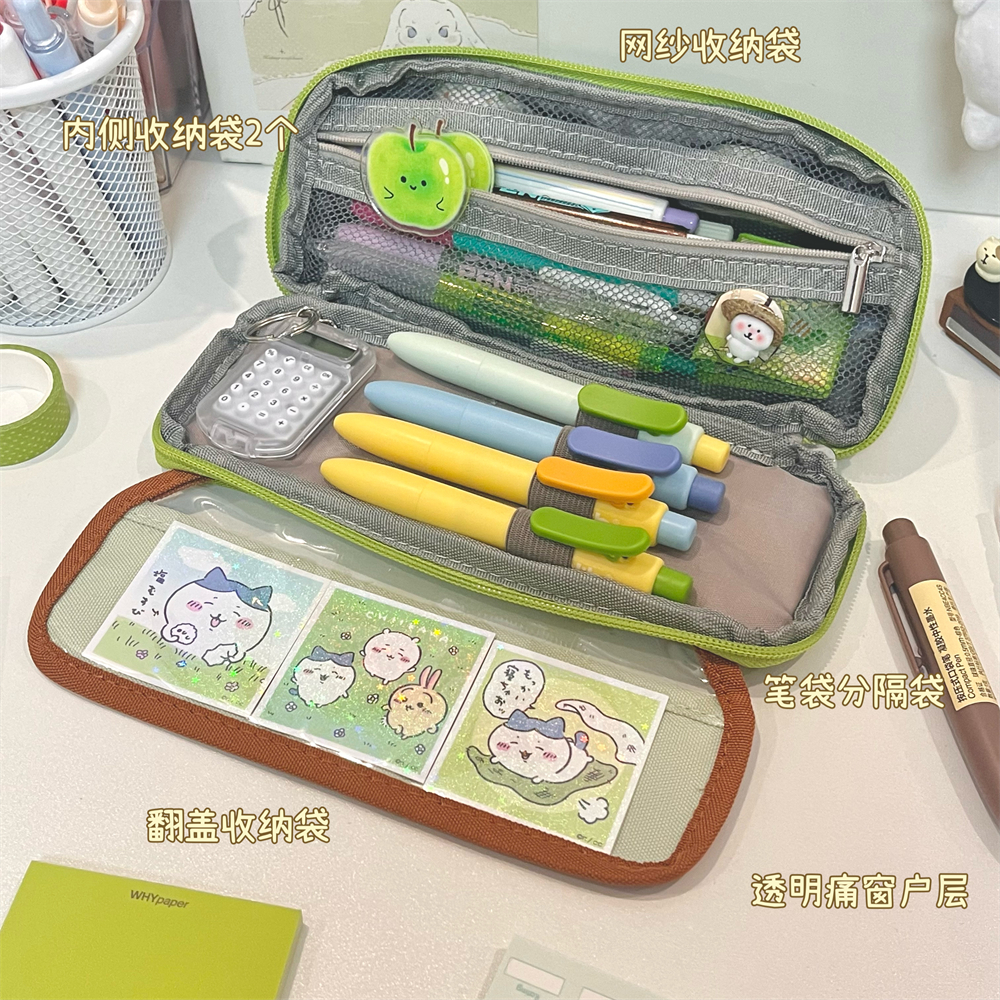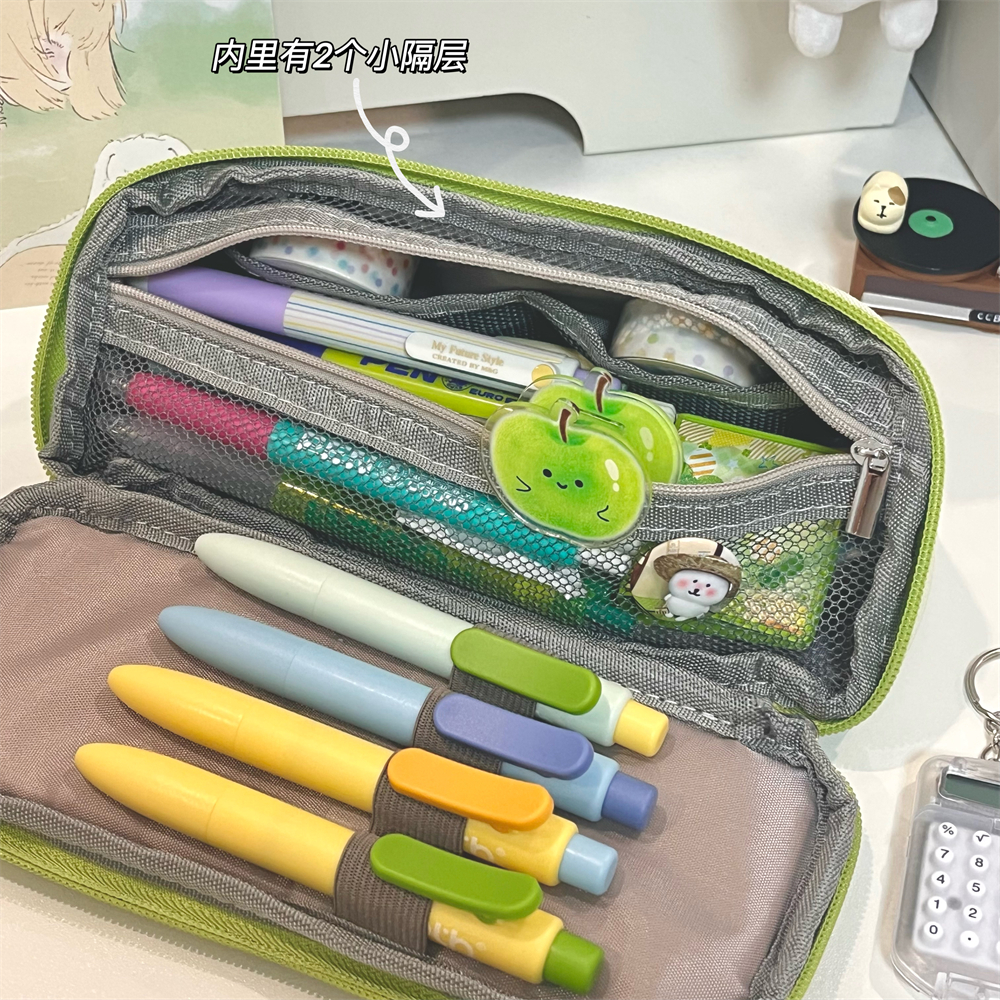 牛油果三角痛包笔袋ins学生高颜值大容量拼色小众文具收纳铅笔袋