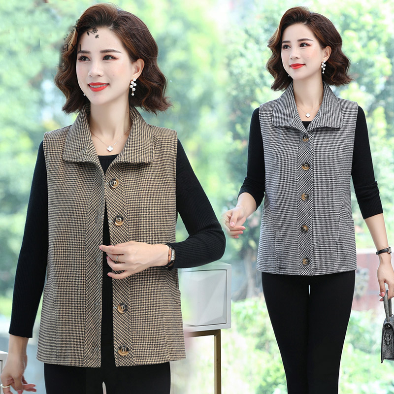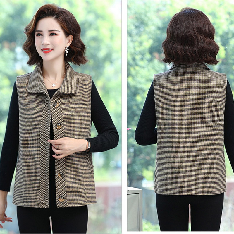 春秋布马甲背心坎肩妈妈秋装女马夹薄款外套50岁中老年女装中长款