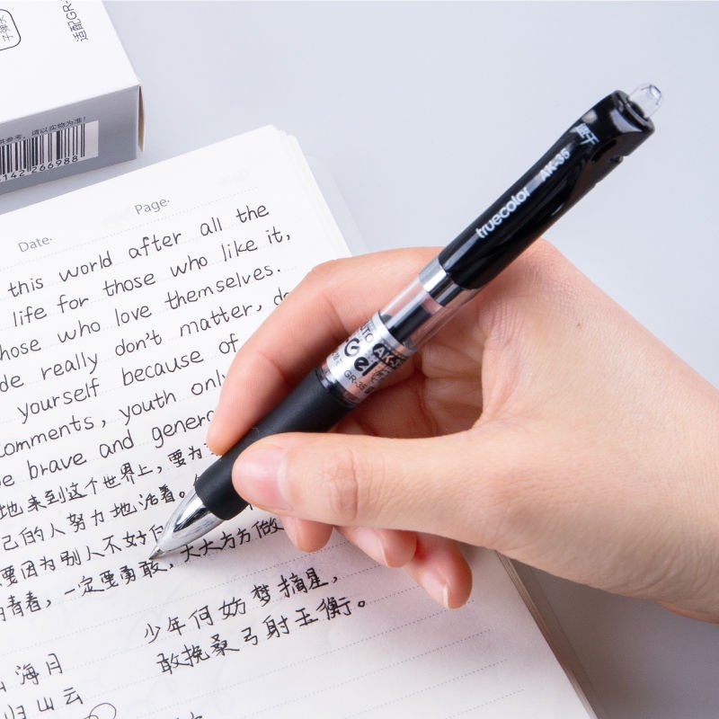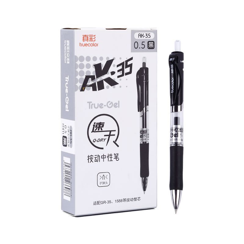 真彩k35按动中性笔黑色速干刷题笔0.5mm炭素水笔按压跳动式签字笔