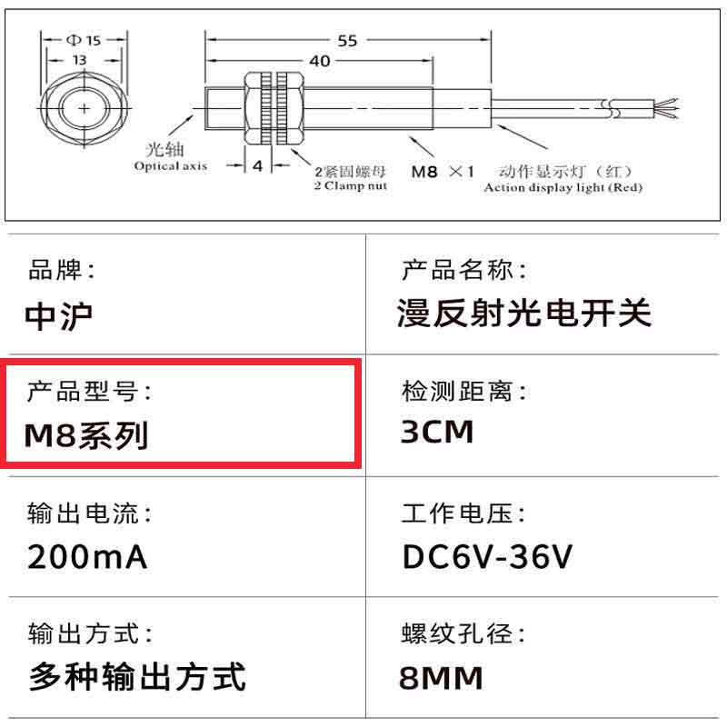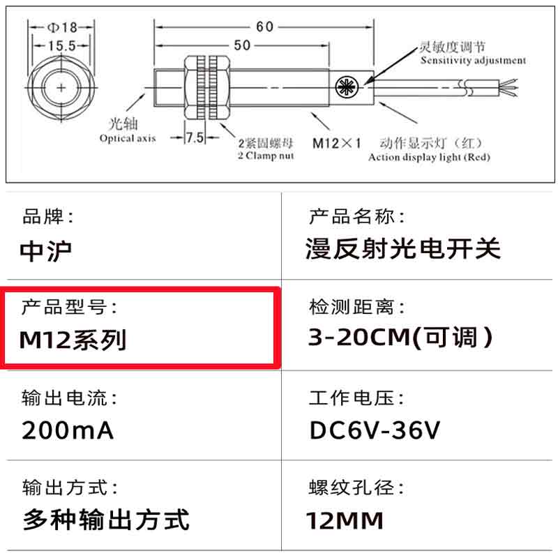 m18m12m8红外线漫反射激光光电开关传感器感应开关npn三线常开24V