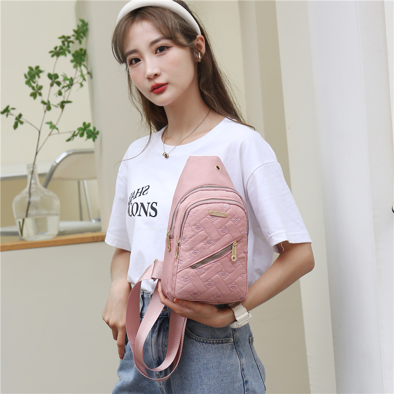 驰豹胸包女2025新款时尚百搭单肩斜挎包休闲运动小背包牛津布胸包