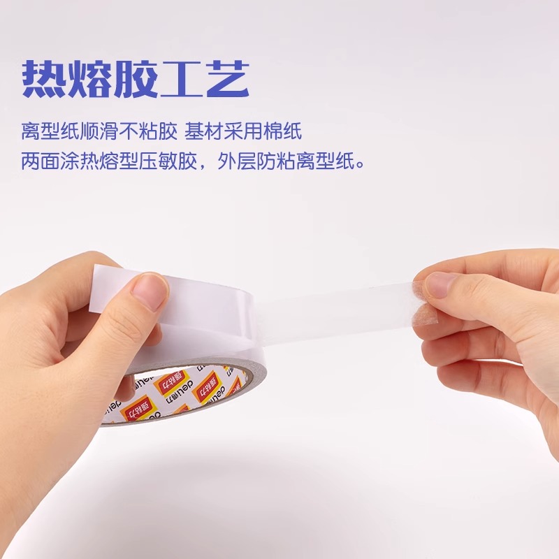 得力双面胶学生用高粘度薄款手工棉纸两面强力白色撕不留痕胶带布