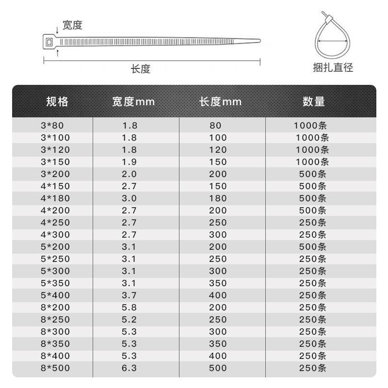 宇泰自锁式尼龙扎带4*200 大小塑料扎线带电线捆扎束线带黑/白色