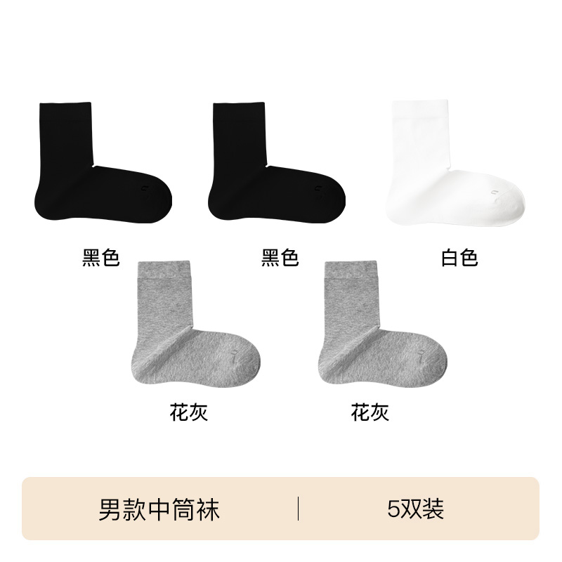 全棉时代男女袜子情侣款全棉5A抗菌透气船袜中筒袜舒适运动