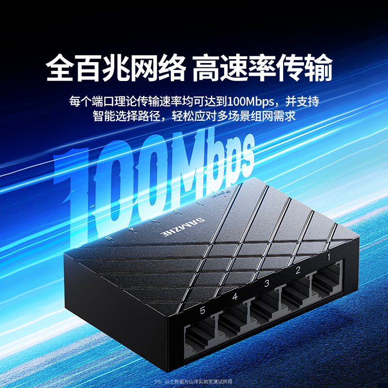 山泽百兆交换机5/8口光猫路由器网线口扩展转换多接口以太局域同时上网宿舍家用宽带监控专用网络分流分线器