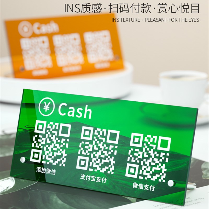 现货速发亚克力二维码收付款展示牌创意支付宝收款收银摆台立牌制