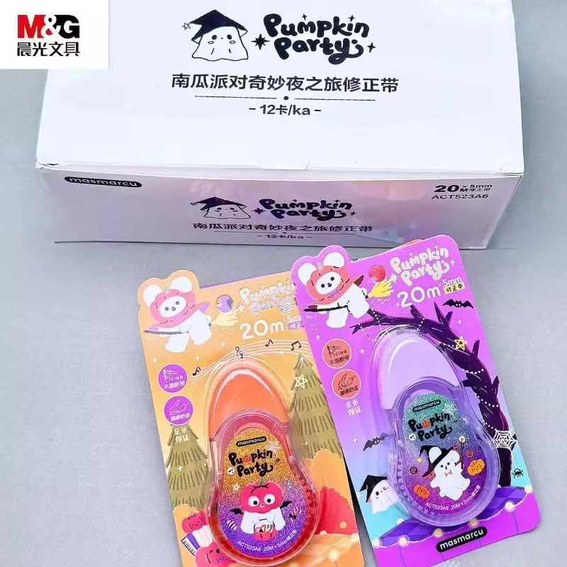 晨光南瓜派对奇妙夜之旅20米修正带可爱大容量PET透明带芯白色涂改中小学生备考试日常改错使用ACT523A6文具