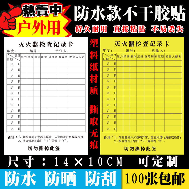 消防器材检查卡灭火器记录卡消火栓点检卡每月巡查登记不干胶贴纸