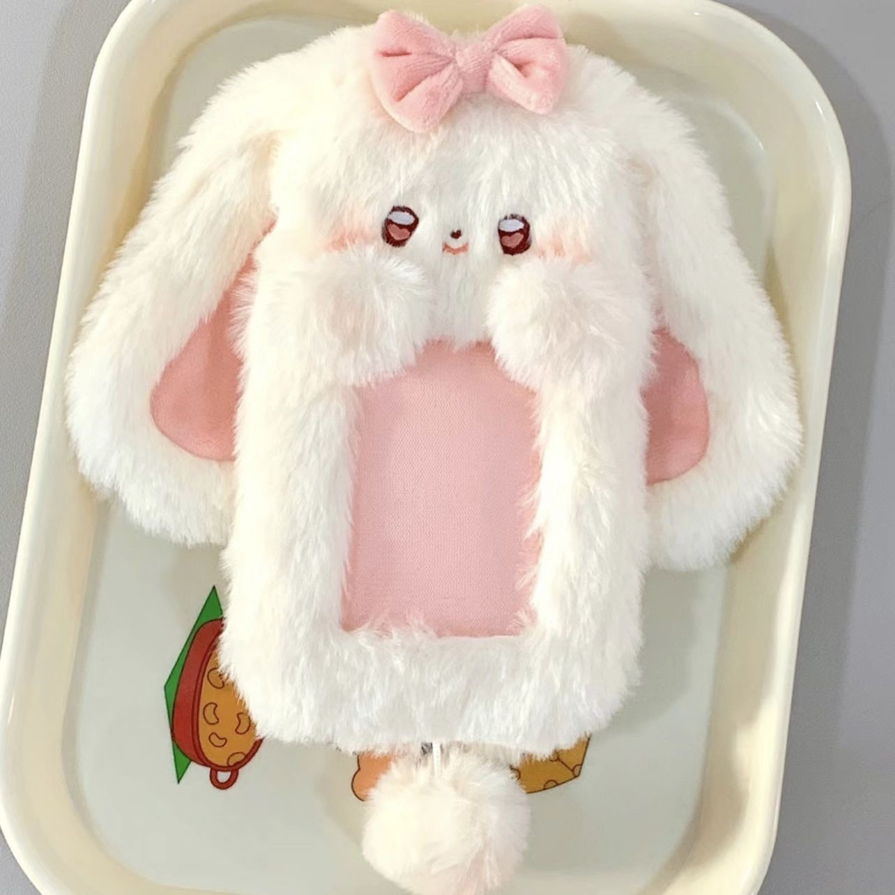 可爱兔子毛绒卡套女学生高颜值防消磁饭卡公交卡通用卡套背包挂件