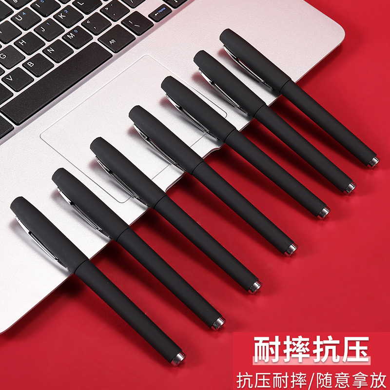 磨砂中性笔0.5mm子弹头黑色签字笔碳素笔水性笔考试笔学生用文具用品商务办公签名大容量巨能写练字书法用笔