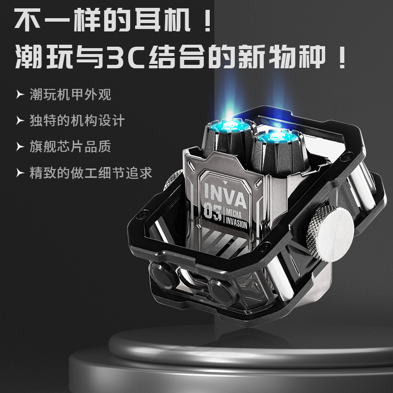 机械入侵机甲耳机无线赛博朋克指尖陀螺入耳通话降噪游戏蓝牙耳机