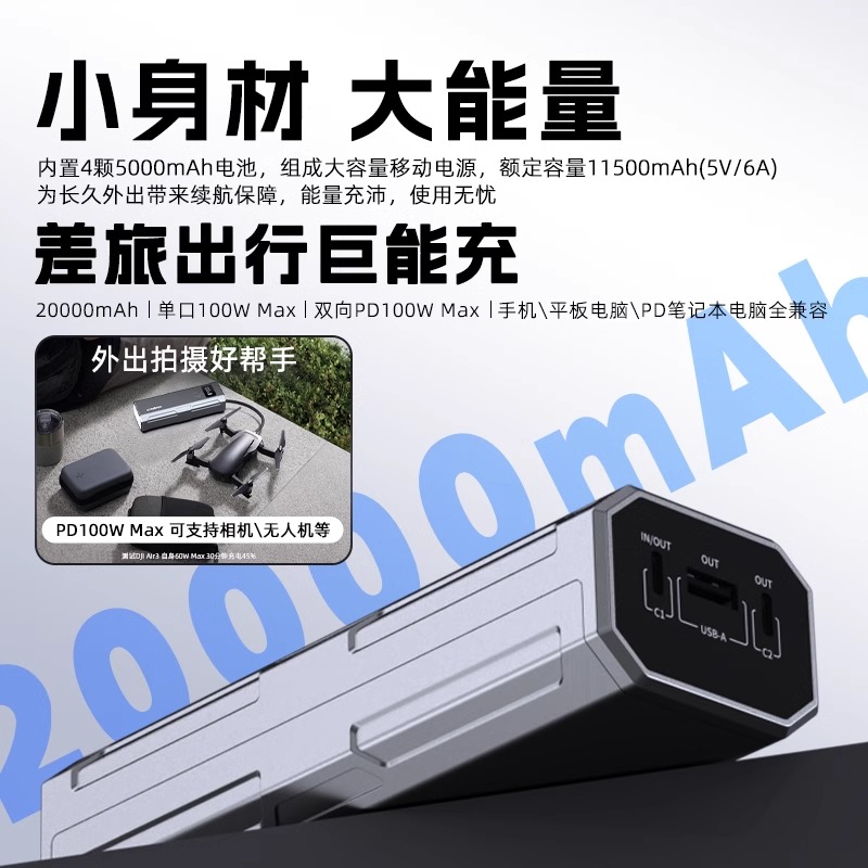 以旧换新| 3C认证充电宝丨品胜2025新款20000毫安大容量22.5W超级快充便携自带双线移动电源适用苹果可上飞机