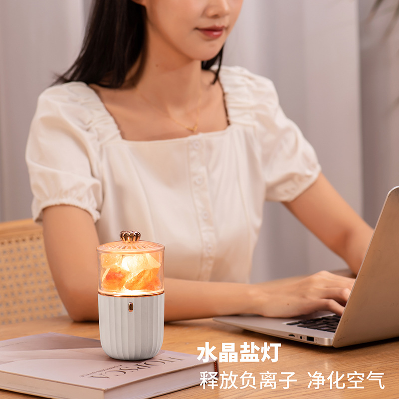 2022新款水晶LED七彩小夜灯车载香薰灯喜马拉雅矿石床头装饰盐灯