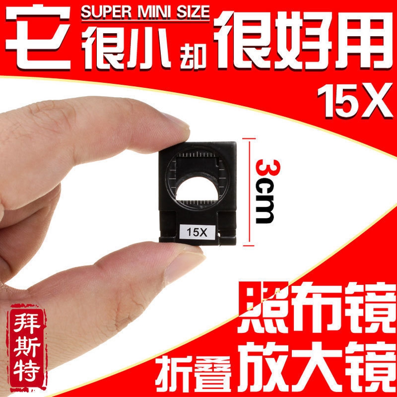 面料放大镜15倍高清密度尺刻度织物密度鸽子眼微型折叠金属照布镜