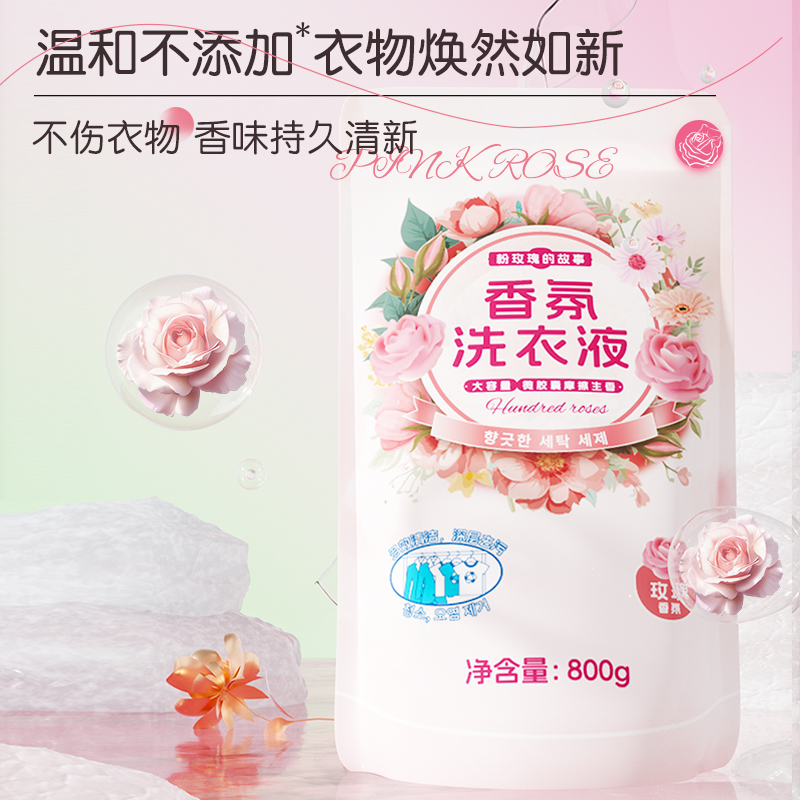 玫瑰香氛洗衣液家用留深层洁净清洁衣物手洗机洗通用800g袋装
