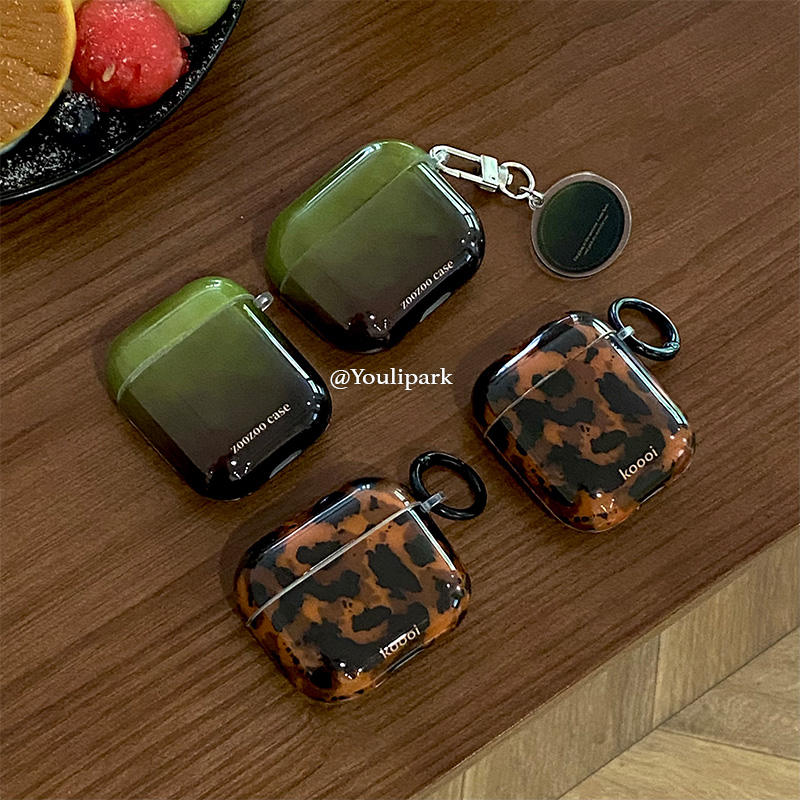 由里公园ins小众复古高级感玳瑁琥珀豹纹抹茶绿晕染适用于Airpods4代无线蓝牙耳机保护套3Pro软壳Airpods Pro