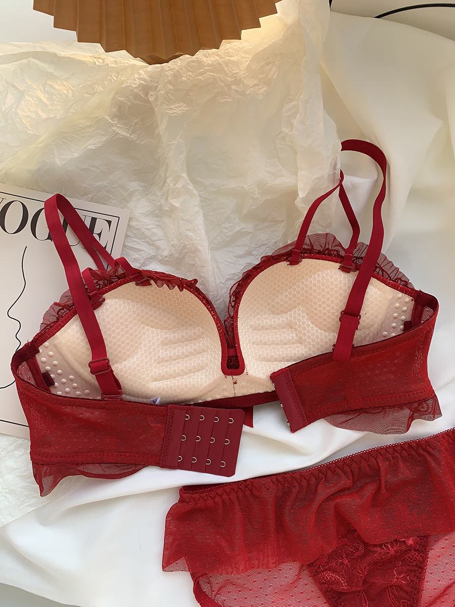 甜蜜诱惑 兔年本命年内衣套装女性感红色结婚胸罩无钢圈小胸聚拢